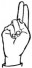 На ћирилици написано САВЕТА АЛУРОВИЋ састоји се из 14 слова [?]. Исписано ћириличном једноручном азбуком за глувонеме: